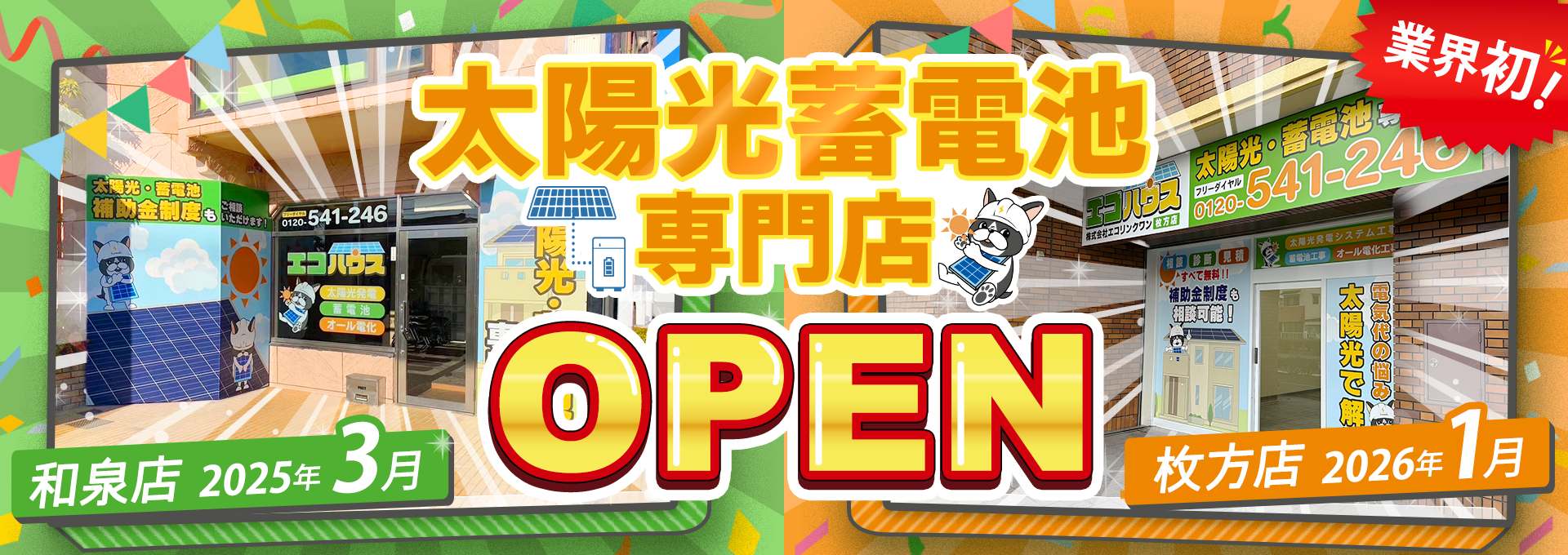 太陽光蓄電池専門店エコハウス枚方ショールームOPEN