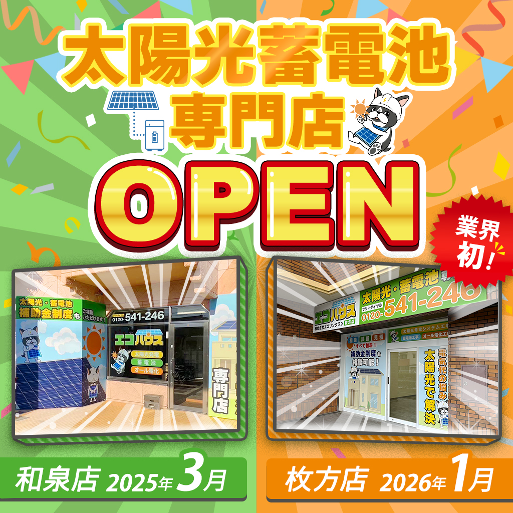このたび、地域密着の太陽光蓄電池専門店エコハウス枚方ショールームをオープンします!
